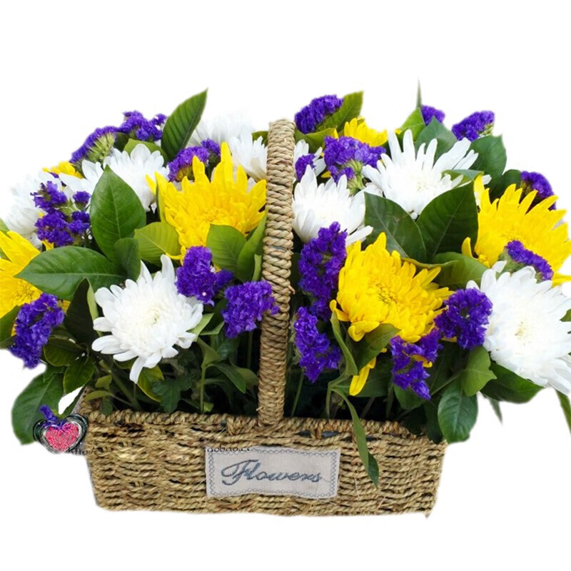 花材:白色菊花,黄色菊花,其它绿叶搭配